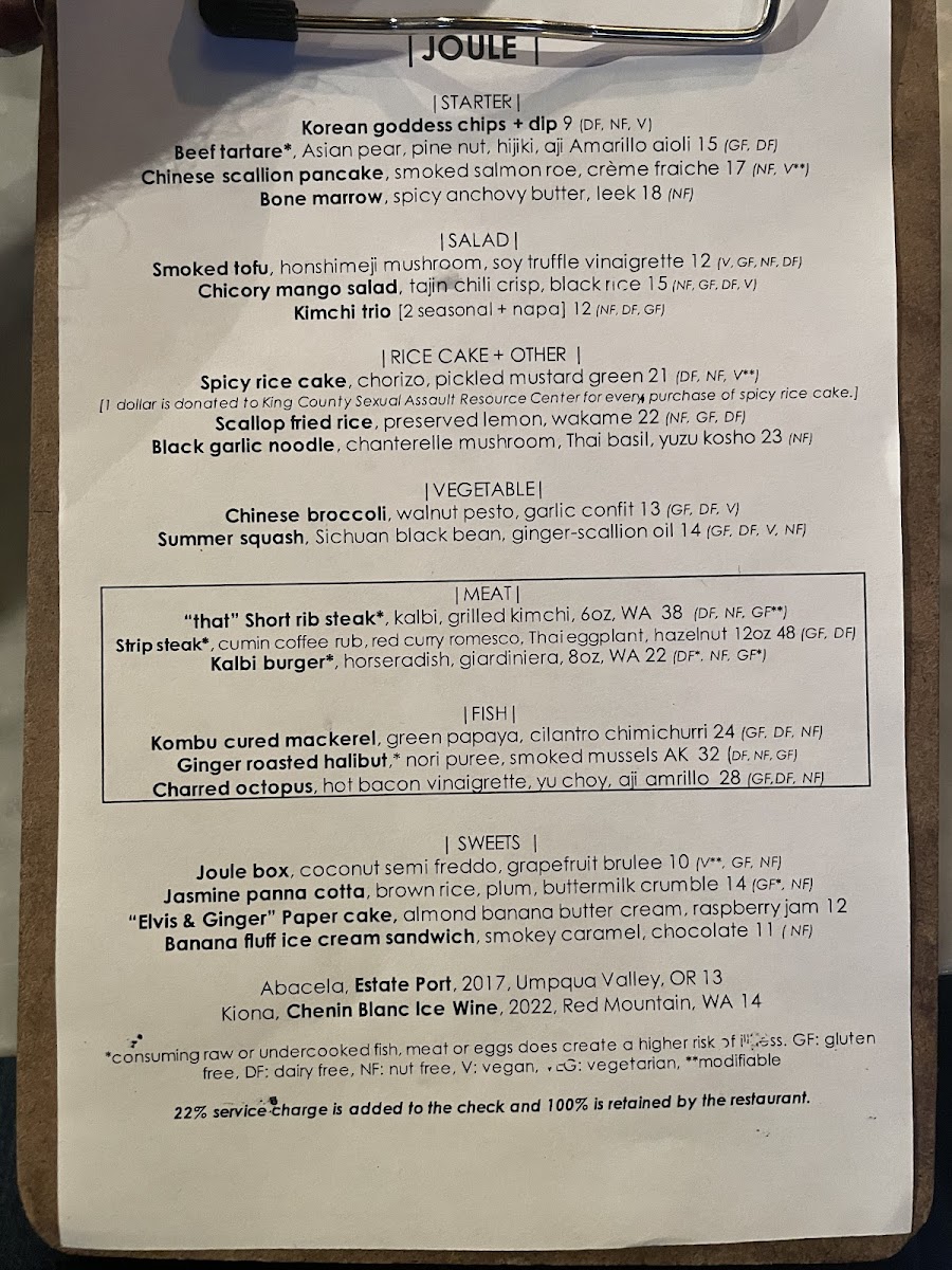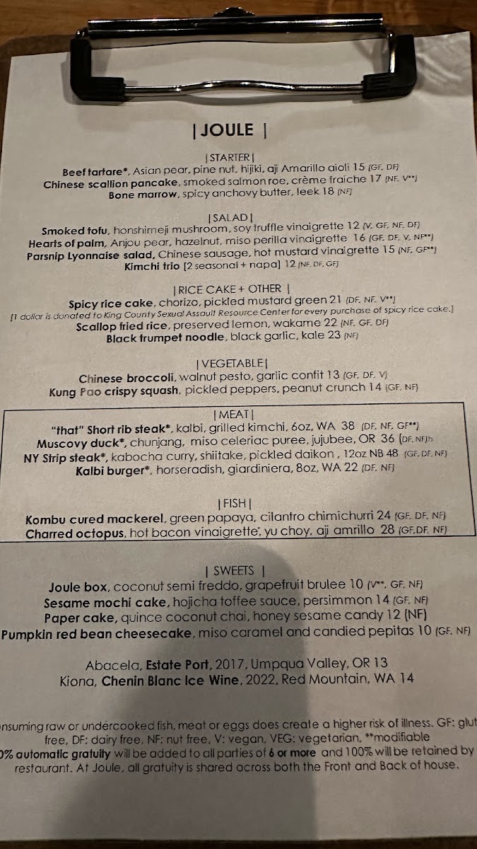 12oz grassfed rib eye steak, kabocha curry, shiitake, pickled daikon (NF, DF, GF)